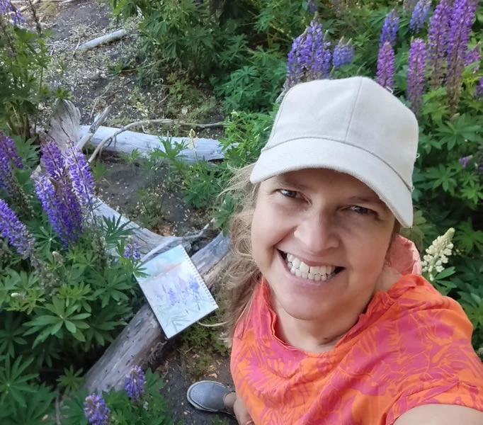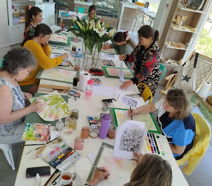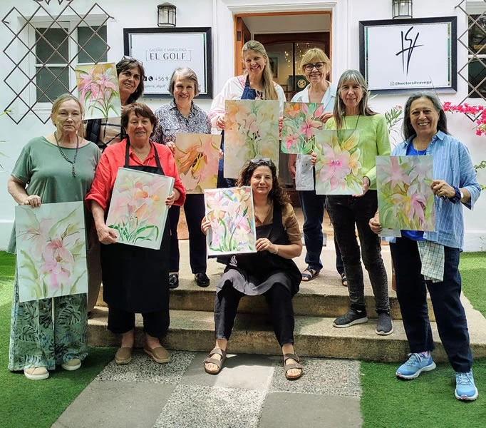 She actively participates in festivals, workshops, and contests, organizing expositions for the growth of Patagonian art. She teaches watercolor in workshops, retreats and designs online classes.