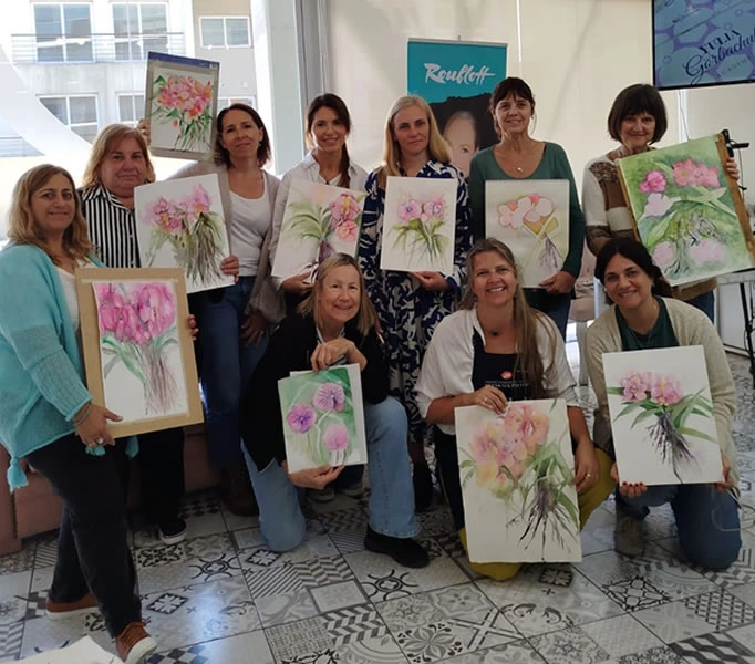 Es líder de la IWS ARGENTINA (International Watercolor Society) y embajadora de las acuarelas White Nights y pinceles Roubloff.